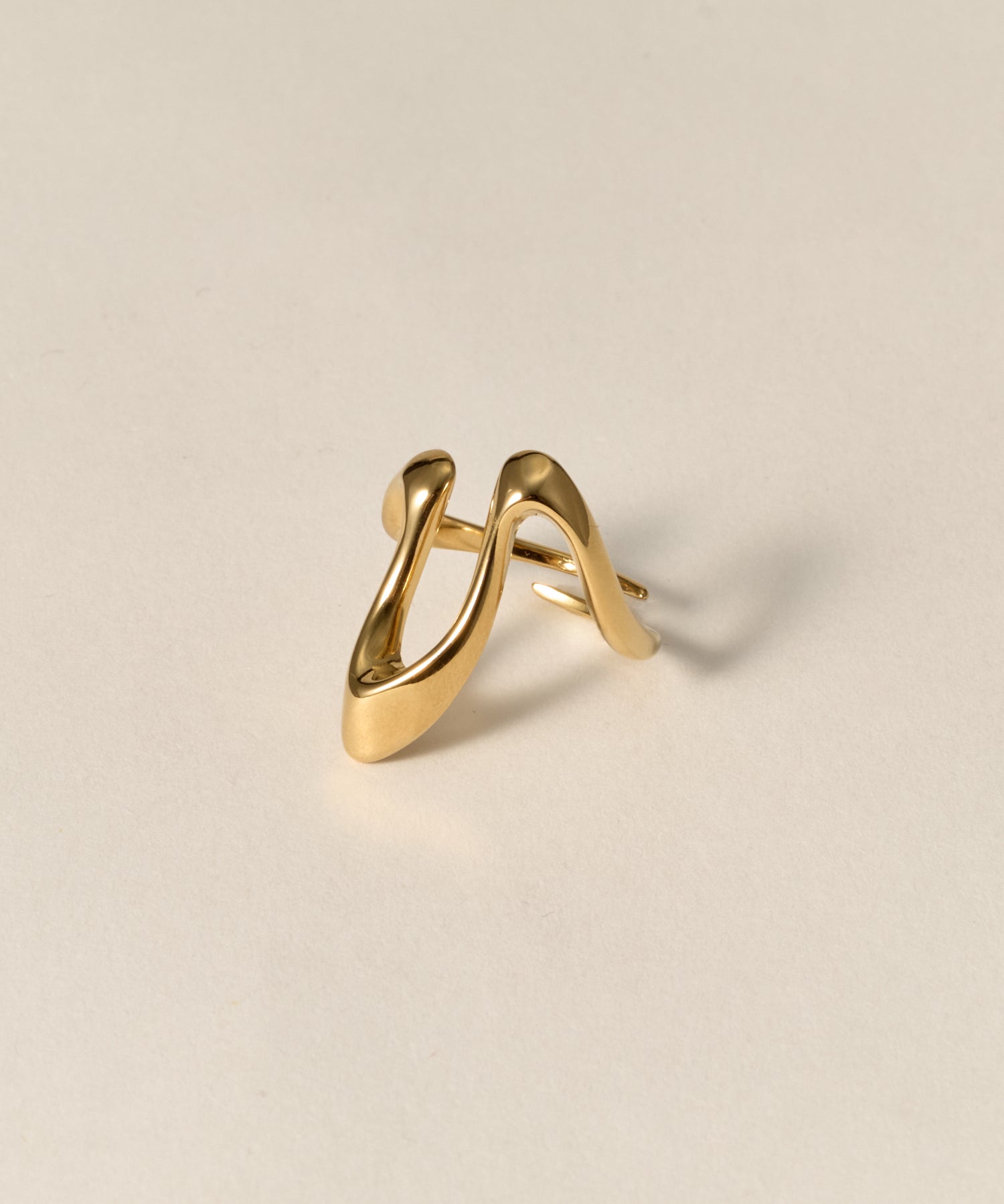 ・立体的にうねるようなカーブラインが、指元にモダンで存在感のあるシルエットを生み出すデザイン。