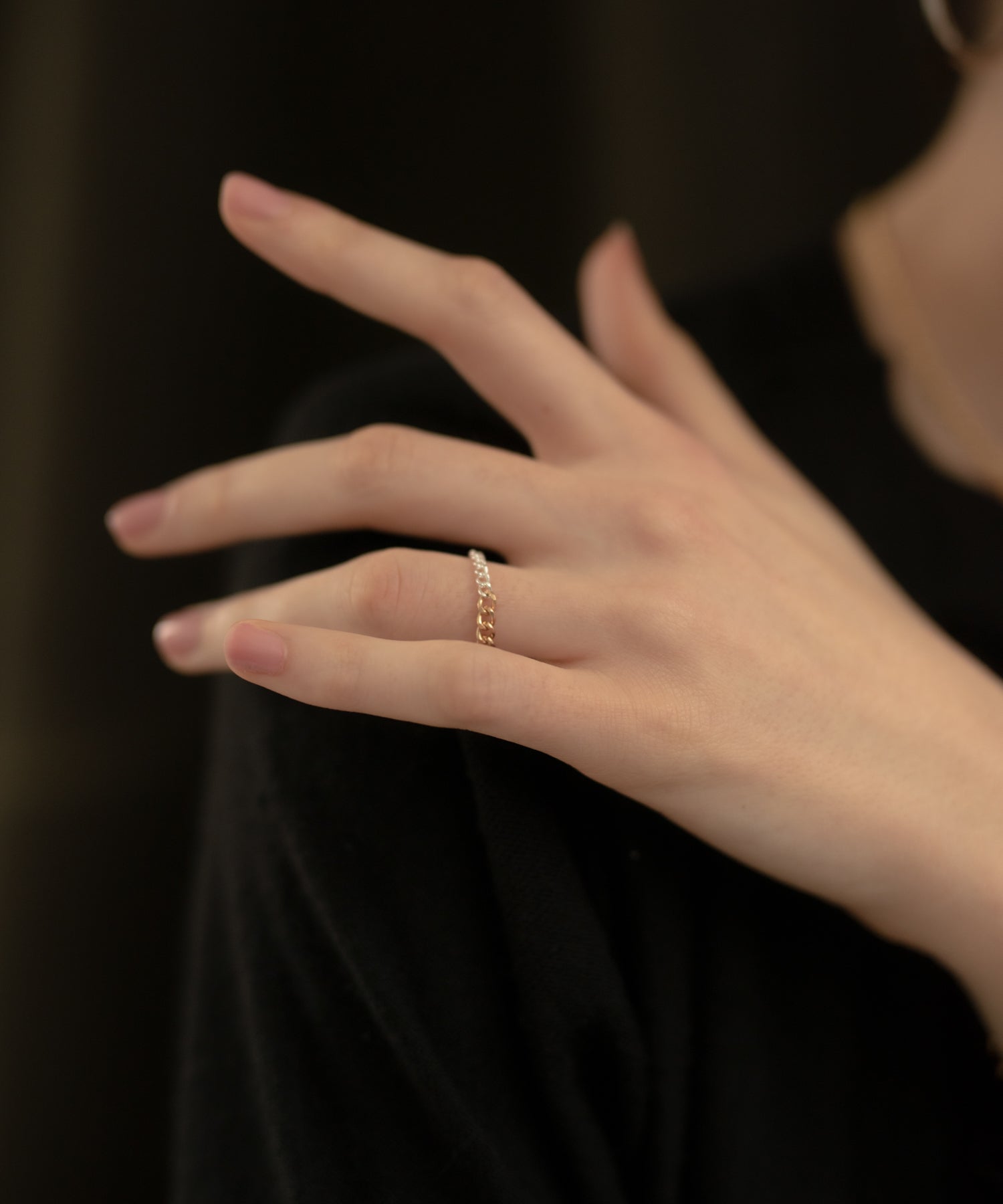 고정되지 않은 체인이 손가락에 감싸는 착용감.