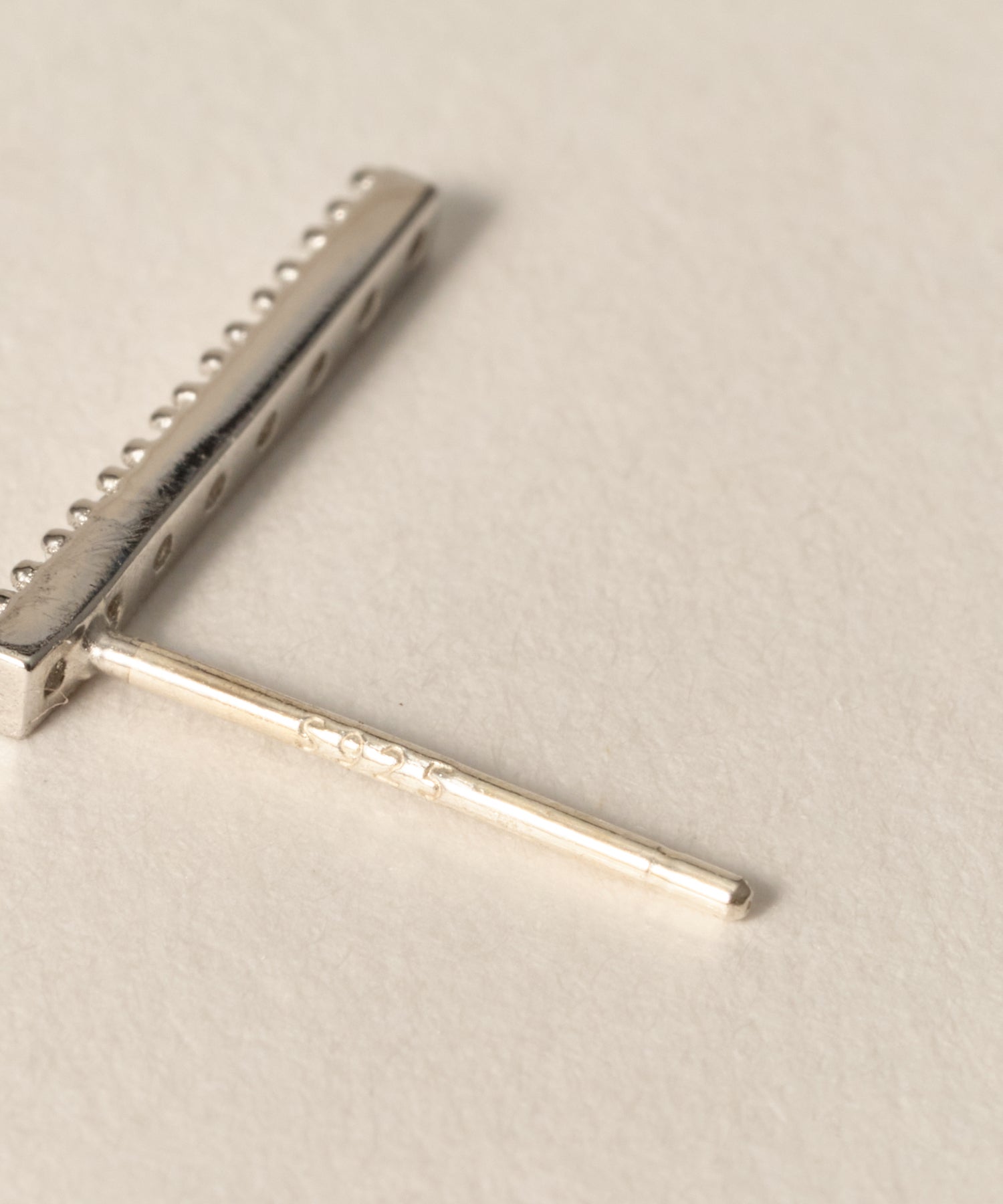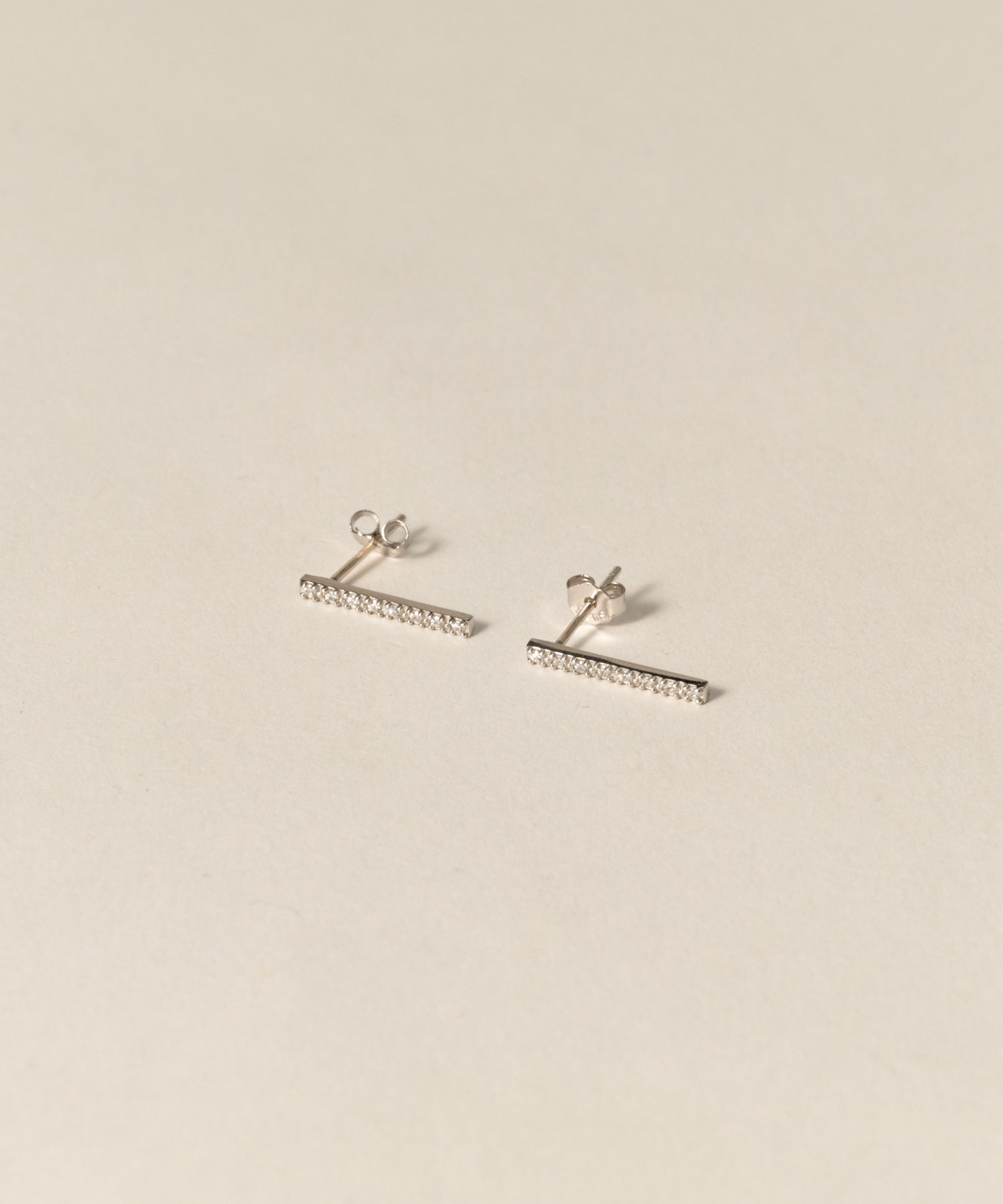 ・縦に伸びたバーラインにCZ(キュービックジルコニア)を敷き詰め、耳元で上品にきらめくミニマルなデザイン。