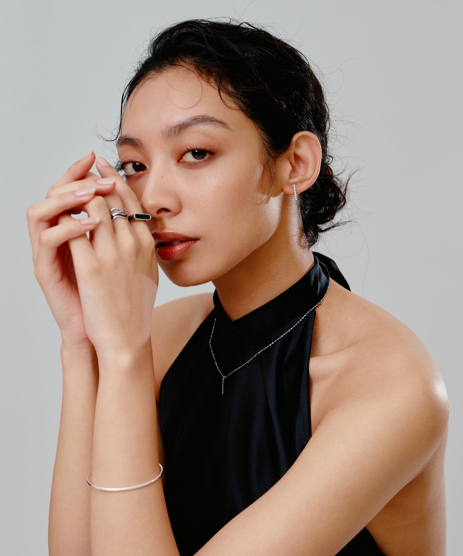 ・縦ラインが耳元をすっきり見せ、どんなスタイリングにも馴染む万能アイテム。