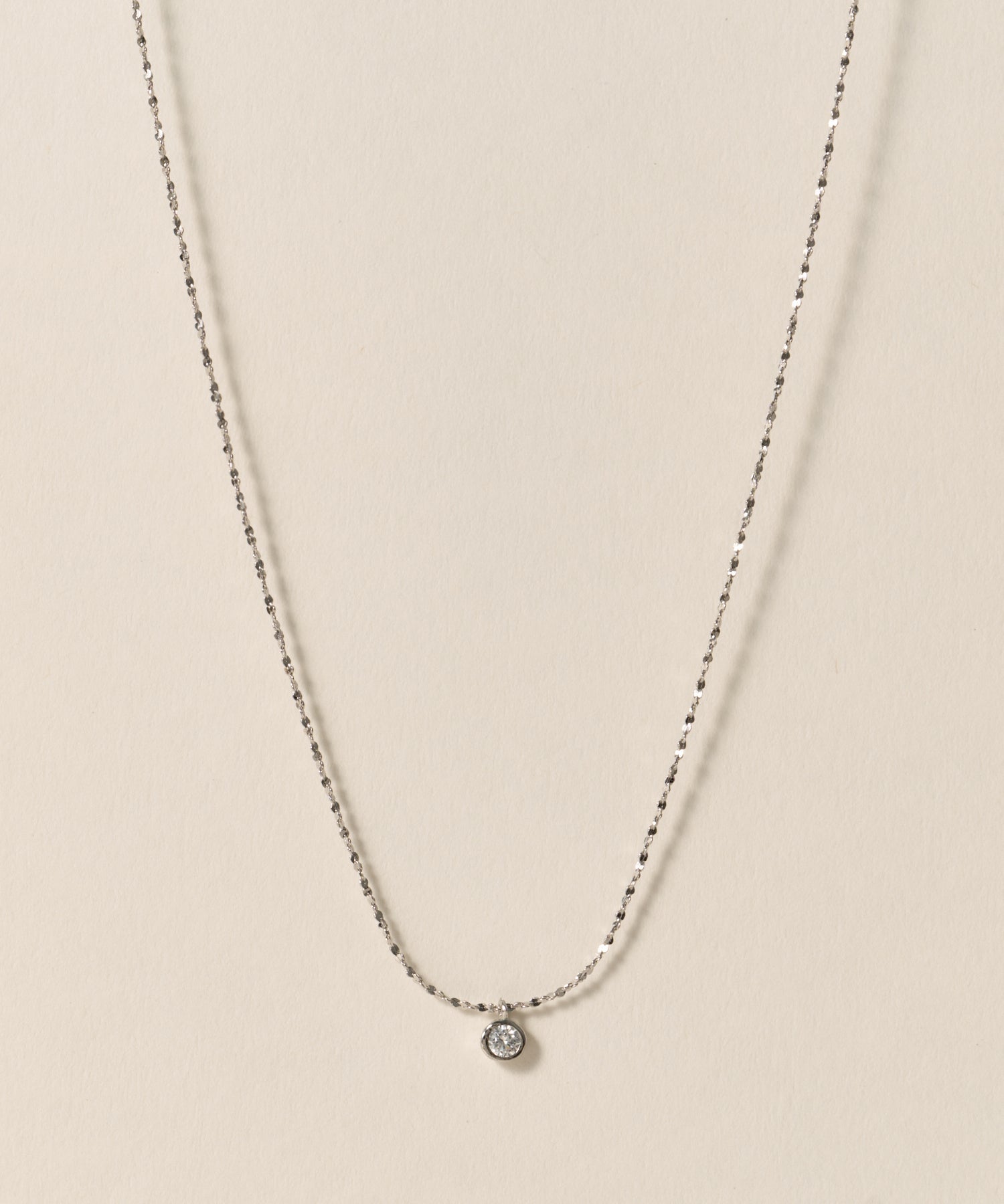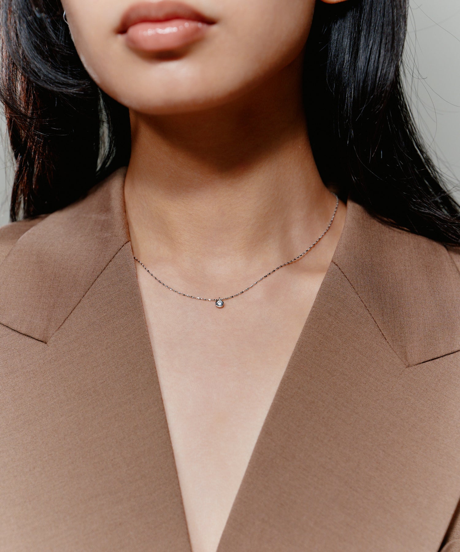 ・胸元でそっと揺れる一粒CZ(キュービックジルコニア)が、光を捉えて繊細に輝くミニマルなデザイン。