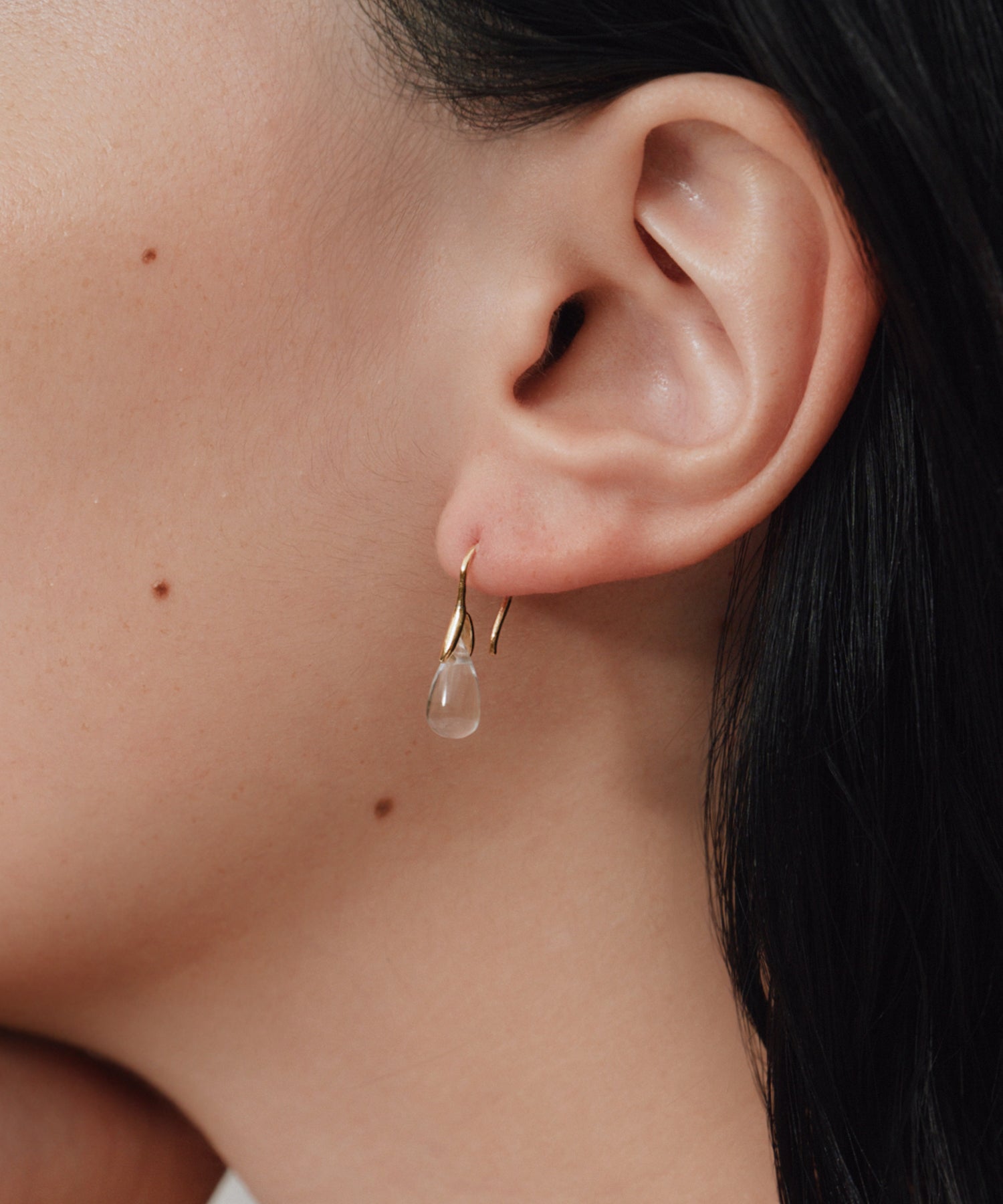 ・滑らかなドロップ型のストーンが揺れるたびに光を反射し、耳元に華やかさをプラス。
