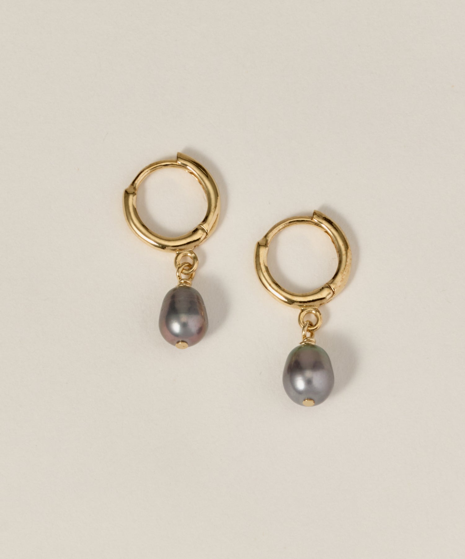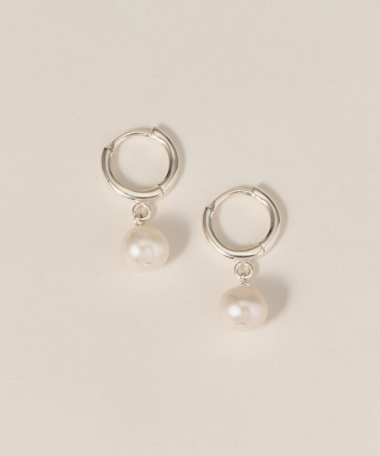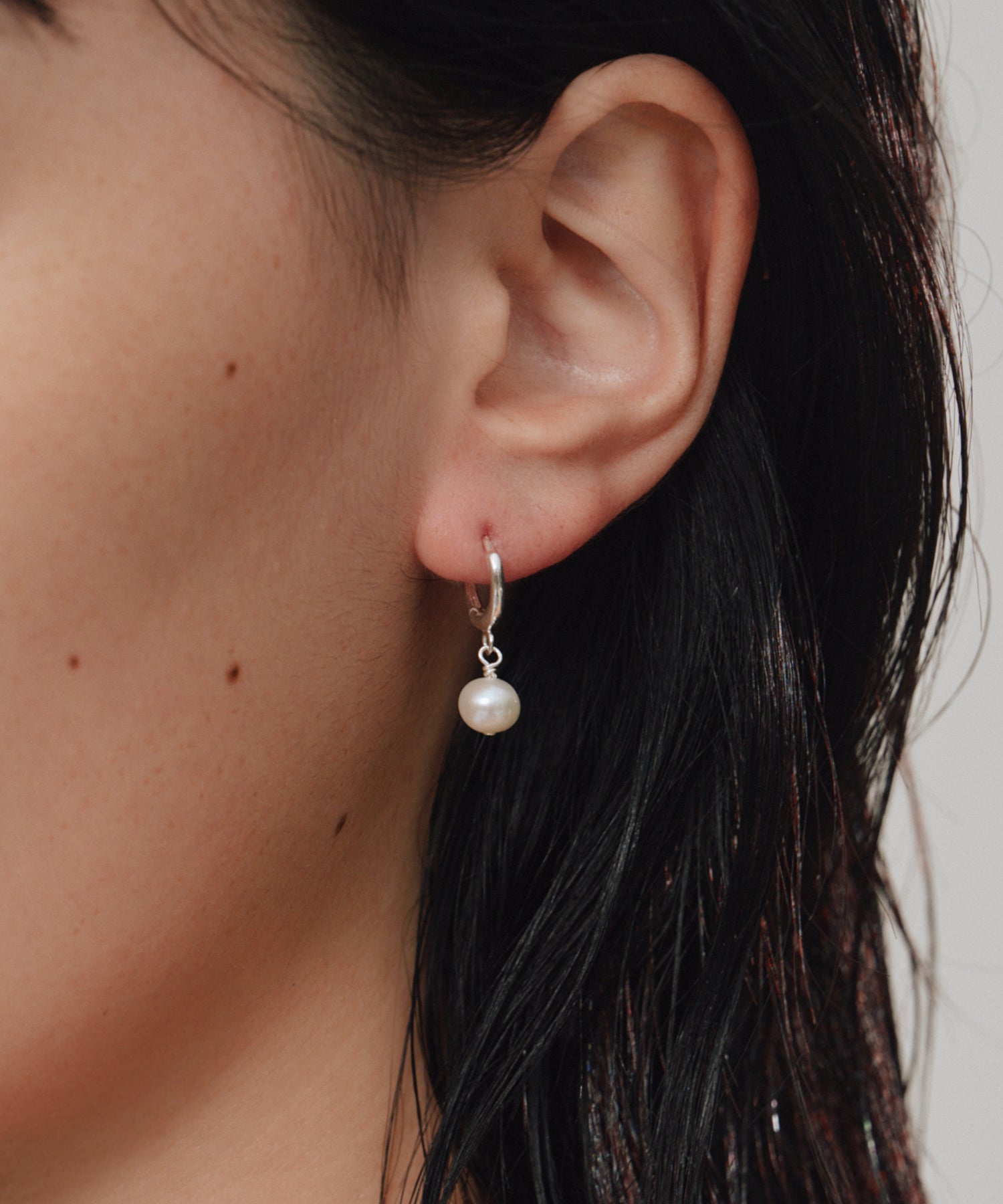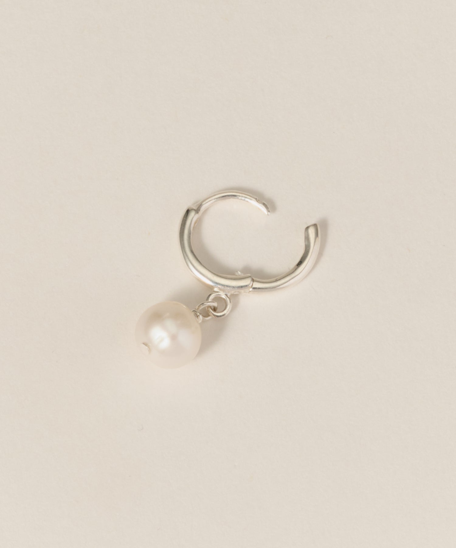 ・シンプルなフープデザインに、一粒パールが揺れる上品なピアス。