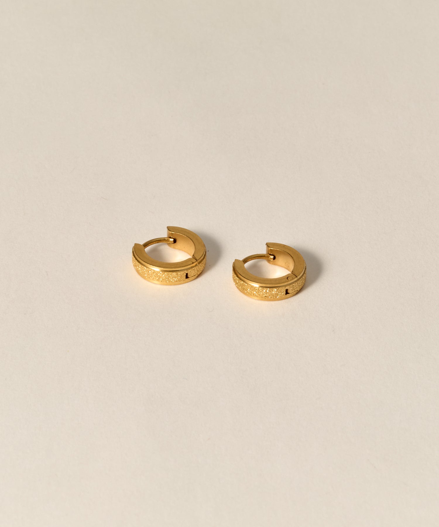 ・表面に施した繊細なサンドテクスチャーが、光を柔らかく反射し上品な輝きを纏うフープピアス。