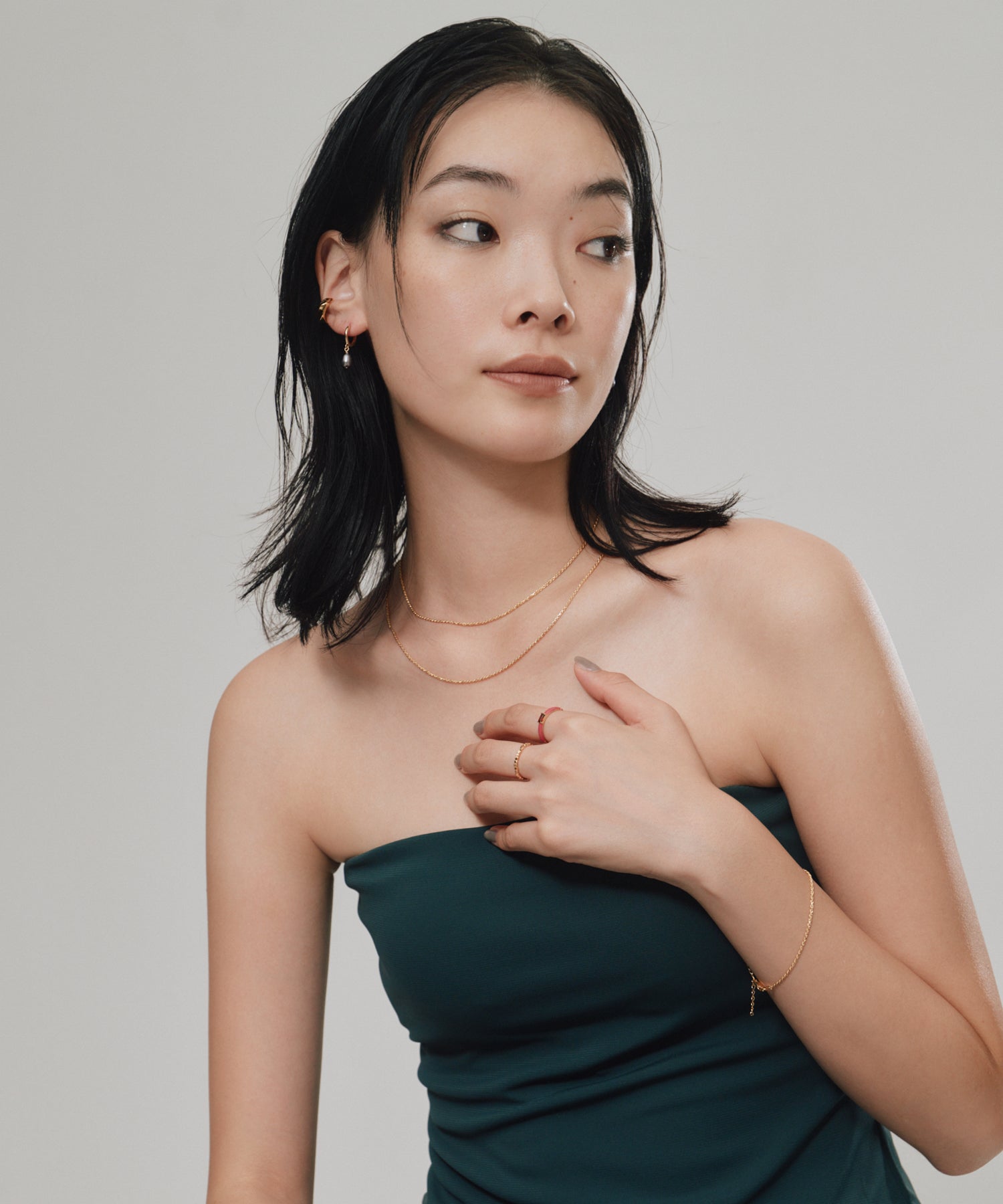 ・華奢ながら立体感のあるシルエットで、首元に自然な存在感をプラス。